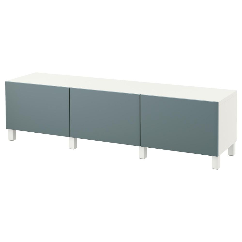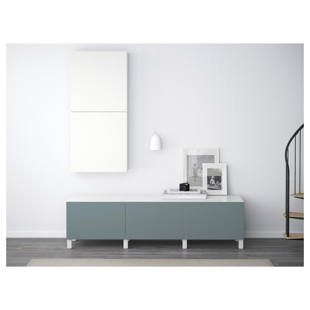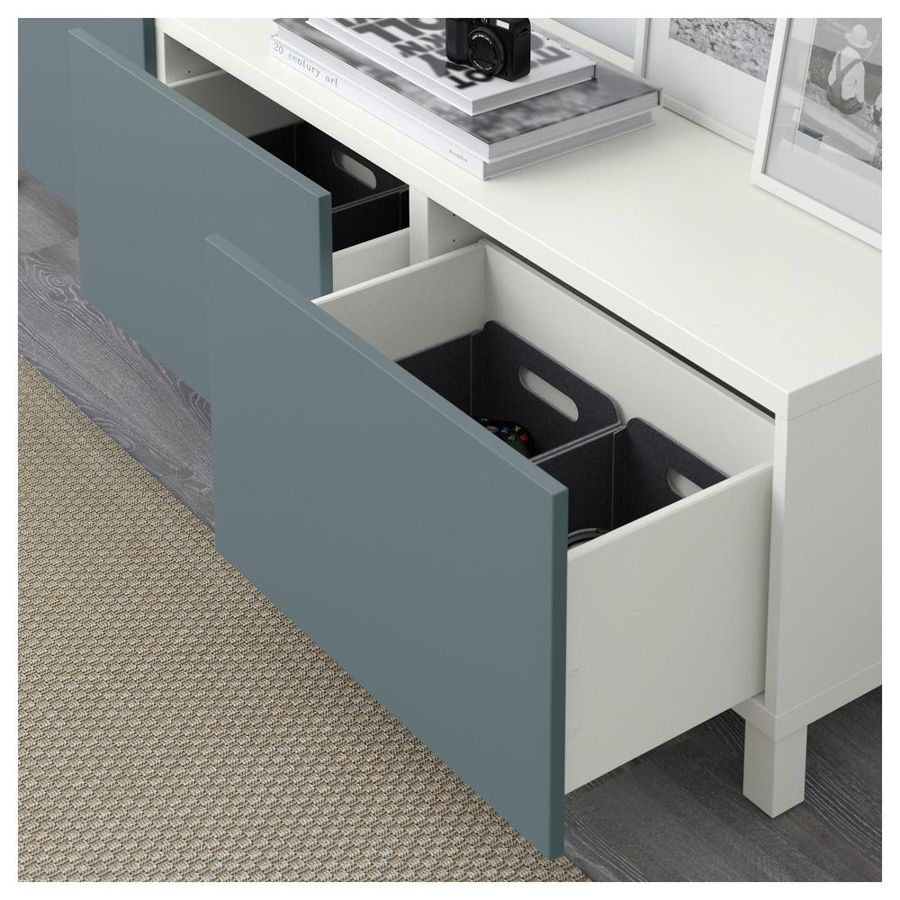 БЕСТО Комбинация для хранения с ящиками - белый/Вальвикен серо-бирюзовый, направляющие ящика, плавно закр