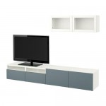 БЕСТО Шкаф для ТВ, комбин/стеклян дверцы - белый/Вальвикен серо-бирюзовый, прозрачное стекло, направляющие ящика, плавно закр