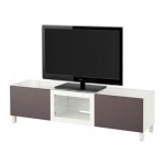 БЕСТО Тумба под ТВ - белый/Вальвикен темно-коричневый, прозрачное стекло, направляющие ящика,нажимные