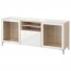 БЕСТО Тумба под ТВ - под беленый дуб/Сельсвикен глянцевый/белый прозрачное стекло, направляющие ящика, плавно закр