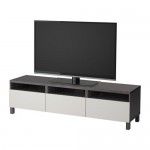 БЕСТО Тумба д/ТВ с ящиками - черно-коричневый/Лаппвикен светло-серый, направляющие ящика, плавно закр