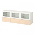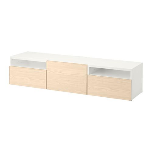 БЕСТО Тумба под ТВ - белый/Инвикен ясеневый шпон, направляющие ящика,нажимные