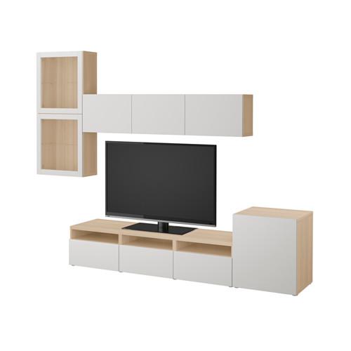 БЕСТО Шкаф для ТВ, комбин/стеклян дверцы - под беленый дуб/Лаппвикен светло-серый прозрачное стекло, направляющие ящика, плавно закр