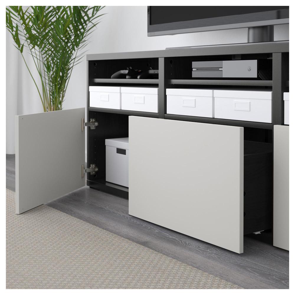 БЕСТО Шкаф для ТВ, комбин/стеклян дверцы - черно-коричневый Синдвик/Лаппвикен светло-серый прозрачное стекло, направляющие ящика,нажимные