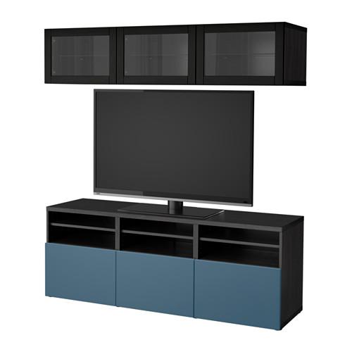 БЕСТО Шкаф для ТВ, комбин/стеклян дверцы - черно-коричневый Вальвикен/темно-синий прозрачное стекло, направляющие ящика,нажимные 0.0/5 оценка (0 голосов)