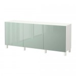 БЕСТО Комбинация для хранения с дверцами - белый/Сельсвикен глянцевый/серо-зеленый светлый