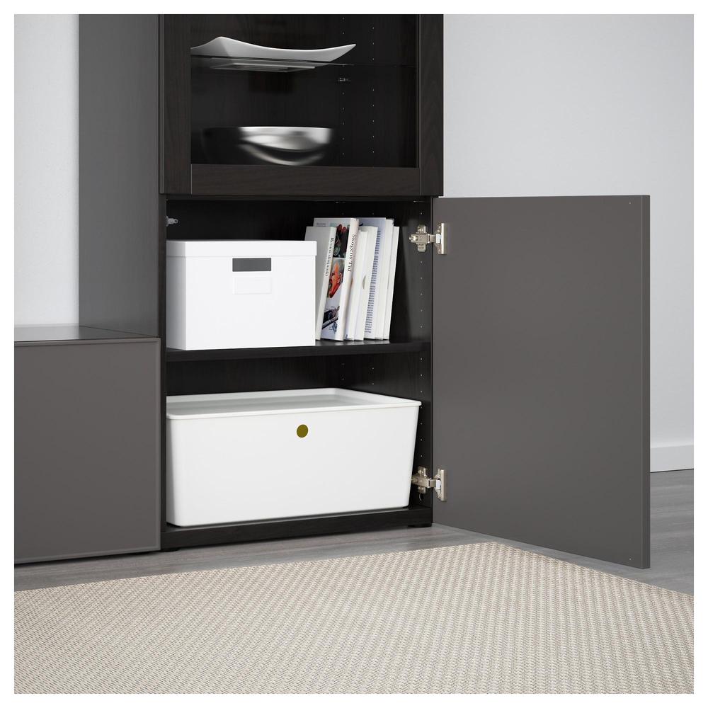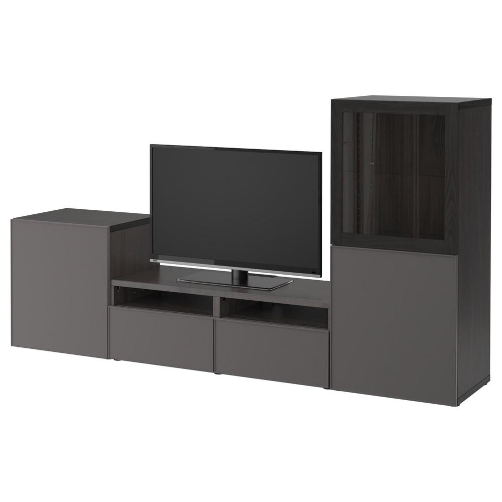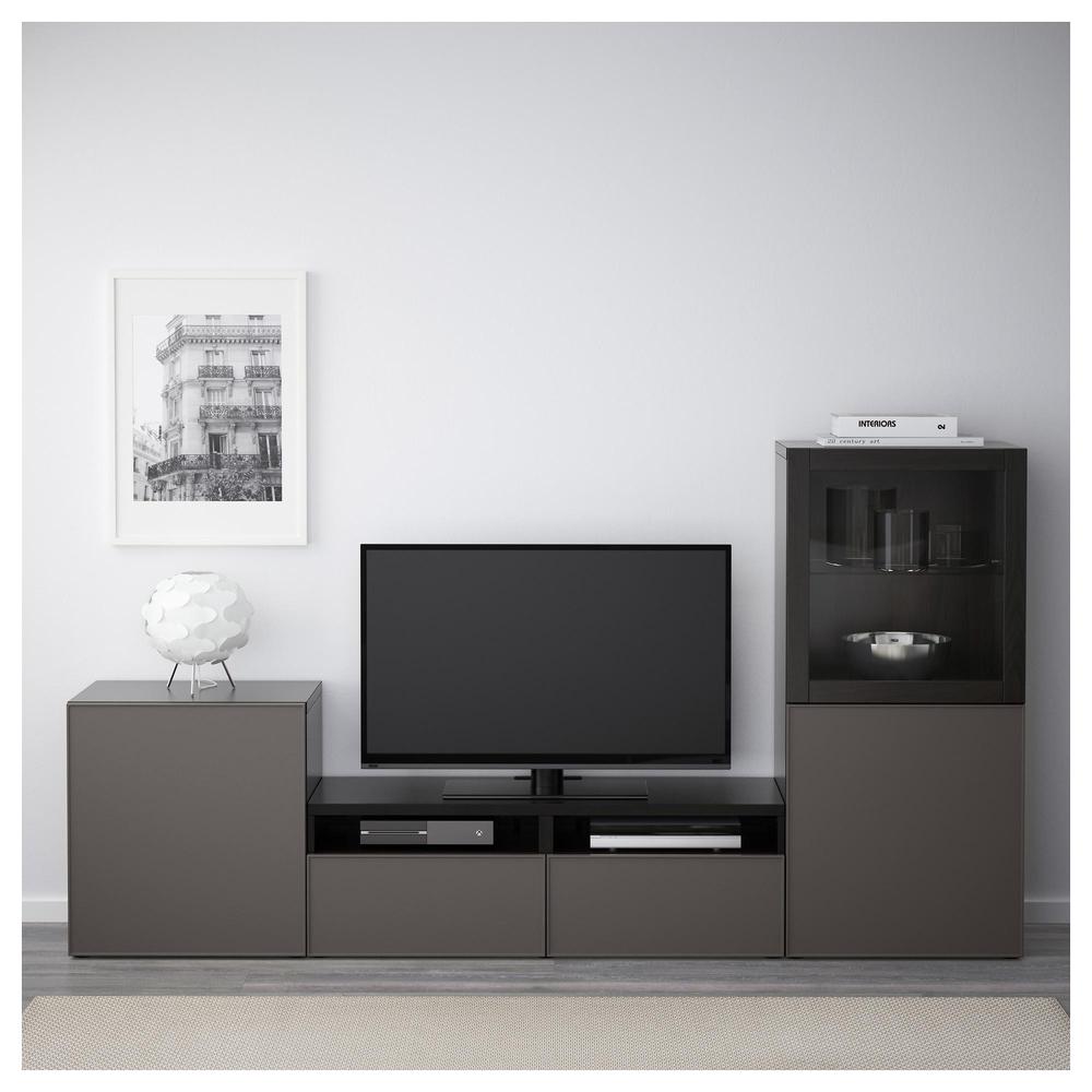 БЕСТО Шкаф для ТВ, комбин/стеклян дверцы - черно-коричневый Грундсвикен/темно-серый прозрачное стекло, направляющие ящика,нажимные 0.0/5 оценка (0 голосов)