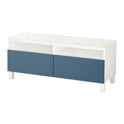 БЕСТО Тумба д/ТВ с ящиками - белый/Вальвикен темно-синий, направляющие ящика,нажимные