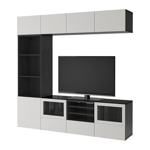 БЕСТО Шкаф для ТВ, комбин/стеклян дверцы - черно-коричневый Лаппвикен/Синдвик светло-серый прозрачное стекло, направляющие ящика, плавно закр