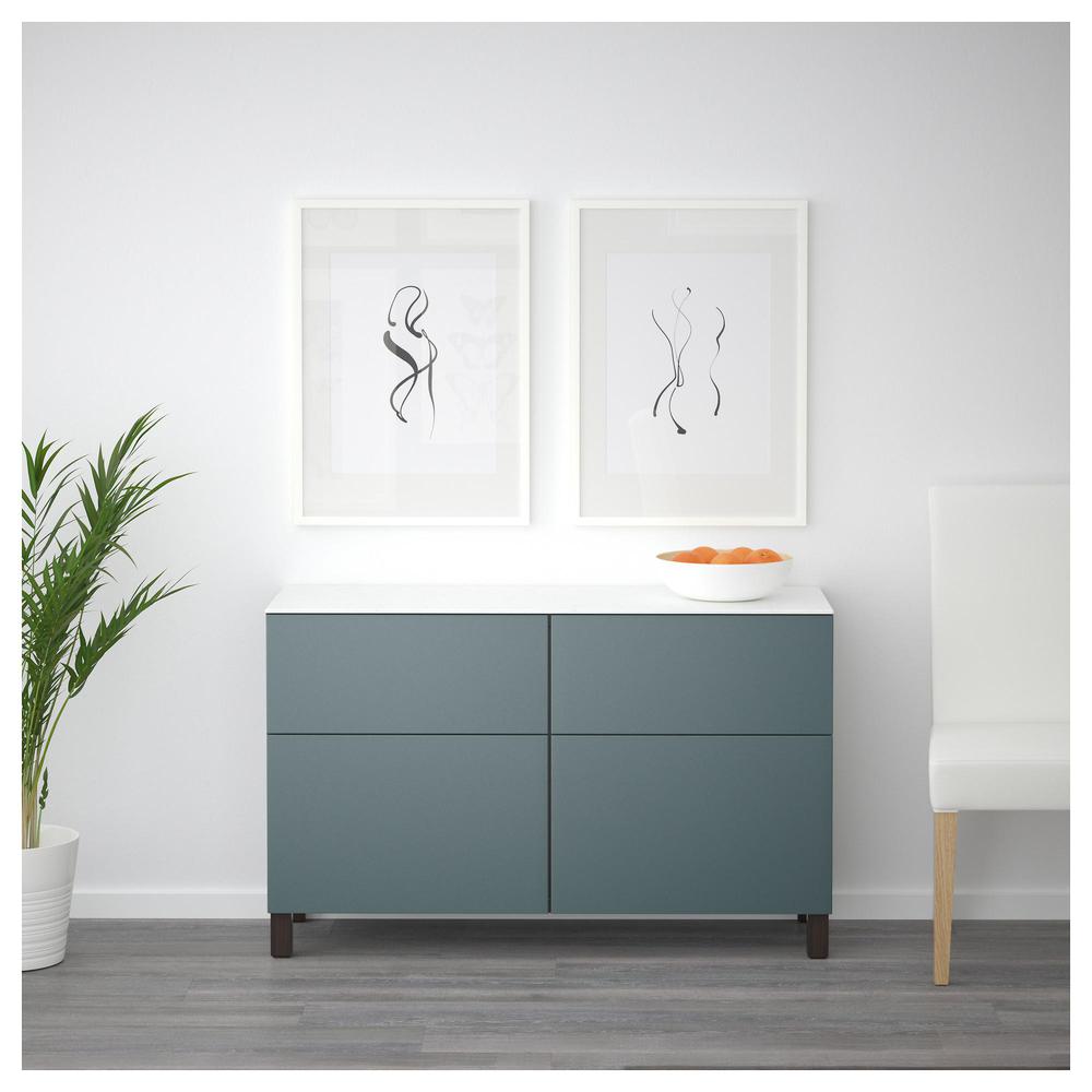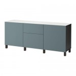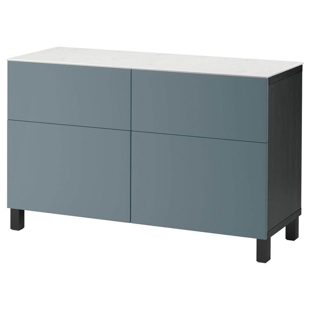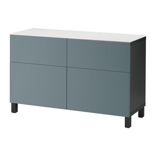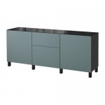 БЕСТО Комб для хран с дверц/ящ - черно-коричневый/Вальвикен серо-бирюзовый, направляющие ящика,нажимные