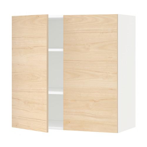 МЕТОД Навесной шкаф с полками/2дверцы - белый, Аскерсунд под светлый ясень, 80x80 см