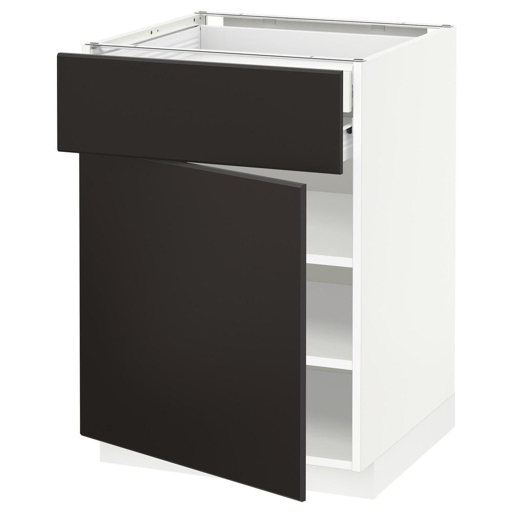 МЕТОД / ФОРВАРА Напольн шкаф двр/фр пнл/плк/2низ ящ - белый, Кунгсбакка антрацит, 60x60 см