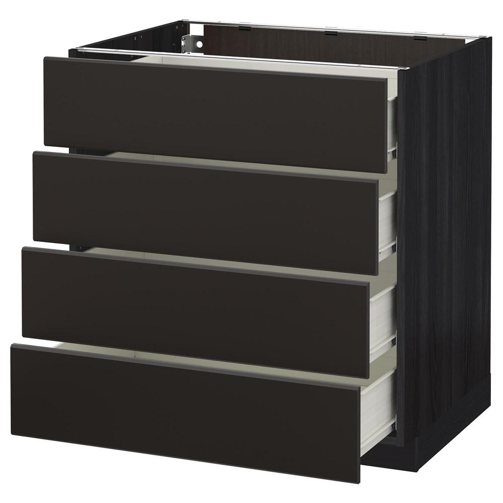 МЕТОД / ФОРВАРА Напольн шкаф 4 фронт панели/4 ящика - под дерево черный, Кунгсбакка антрацит, 80x60 см