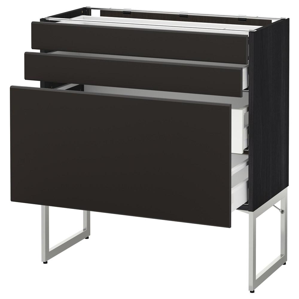 МЕТОД / МАКСИМЕРА Напольн шкаф 3фронт пнл/2низ/2ср ящ - под дерево черный, Кунгсбакка антрацит, 80x37x60 см
