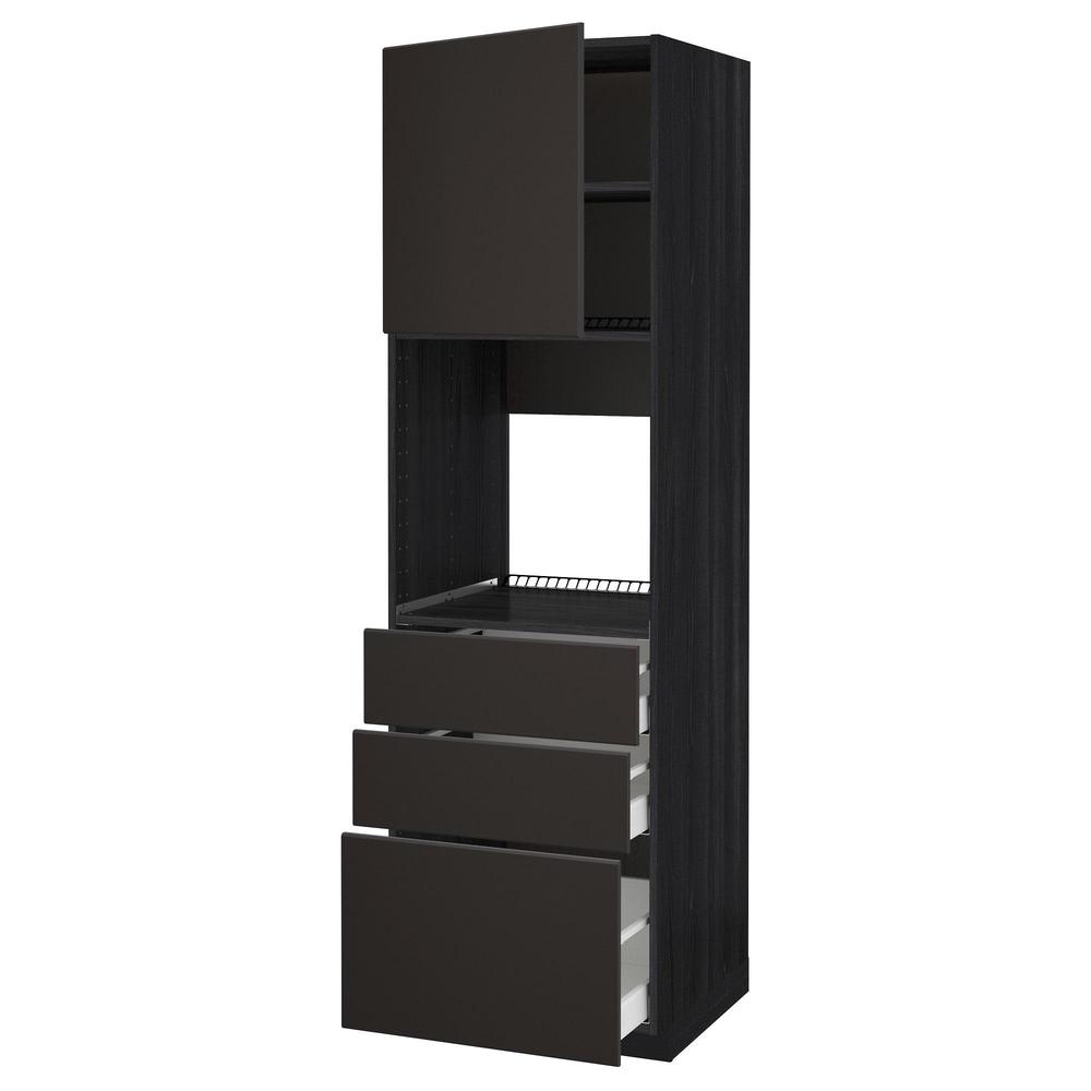 МЕТОД / МАКСИМЕРА Высокий шкаф д/духовки/дверь/3ящика - под дерево черный, Кунгсбакка антрацит, 60x60x200 см