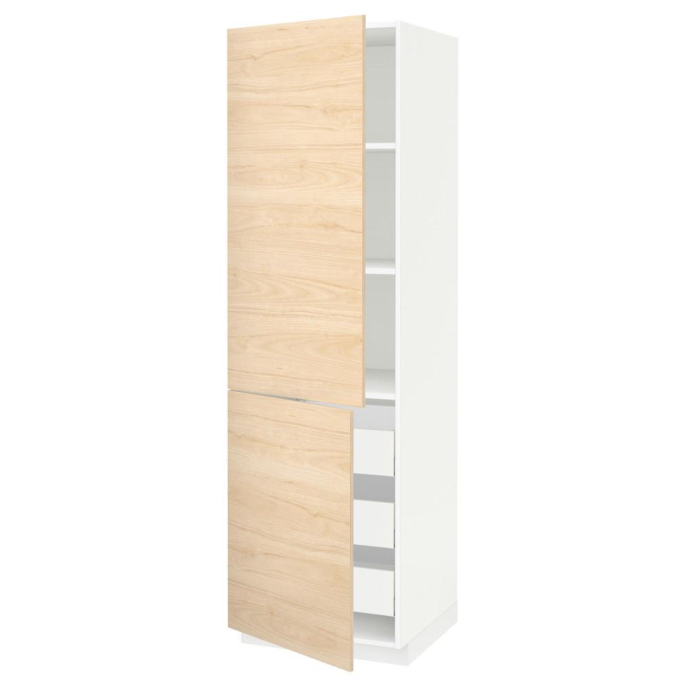 МЕТОД / МАКСИМЕРА Высокий шкаф+полки/3 ящика/2 дверцы - белый, Аскерсунд под светлый ясень, 60x60x200 см