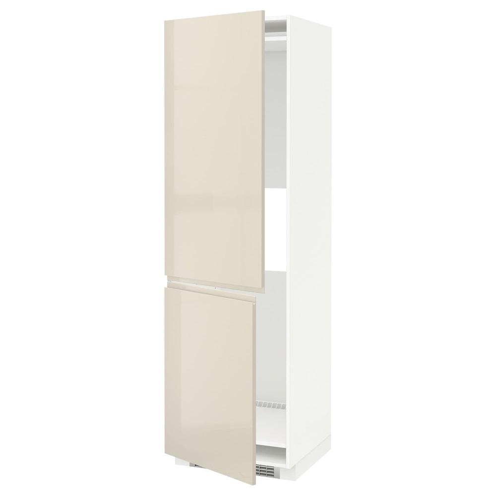 МЕТОД Выс шкаф д/холодильн или морозильн - белый, Воксторп глянцевый светло-бежевый, 60x60x200 см