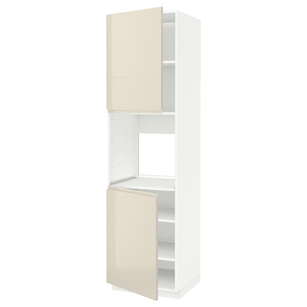МЕТОД Высок шкаф д/духовки/2дверцы/полки - белый, Воксторп глянцевый светло-бежевый, 60x60x220 см