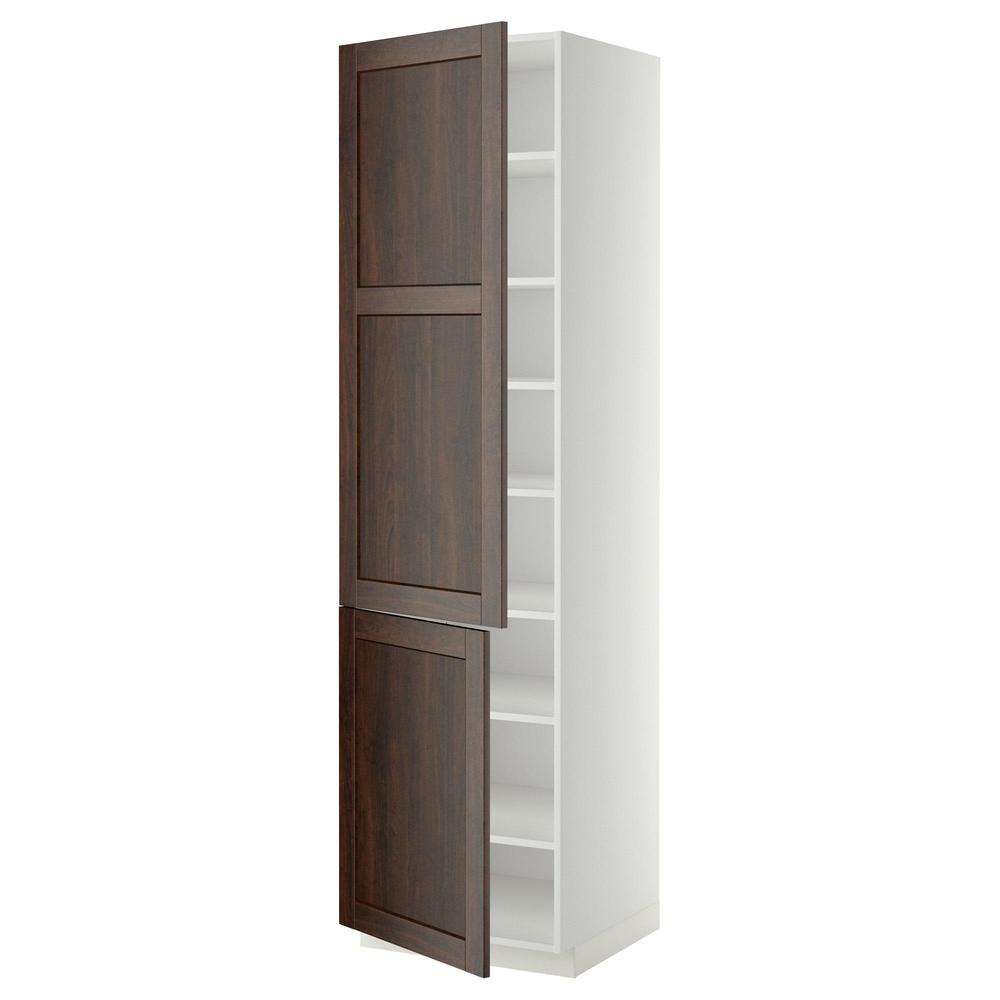 МЕТОД Высокий шкаф с полками/2 дверцы - белый, Эдсерум под дерево коричневый, 60x60x220 см