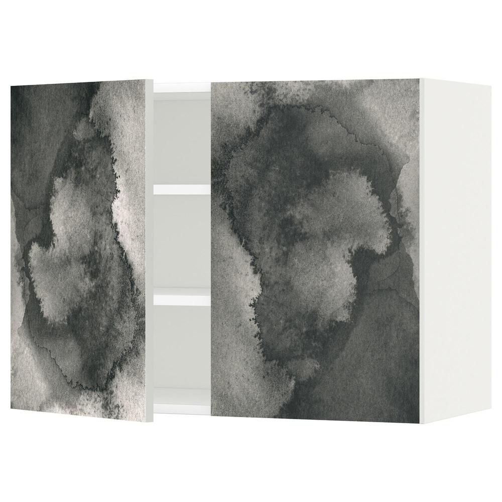 МЕТОД Навесной шкаф с полками/2дверцы - белый, Кальвиа с печатным рисунком, 80x60 см 0.0/5 оценка (0 голосов)