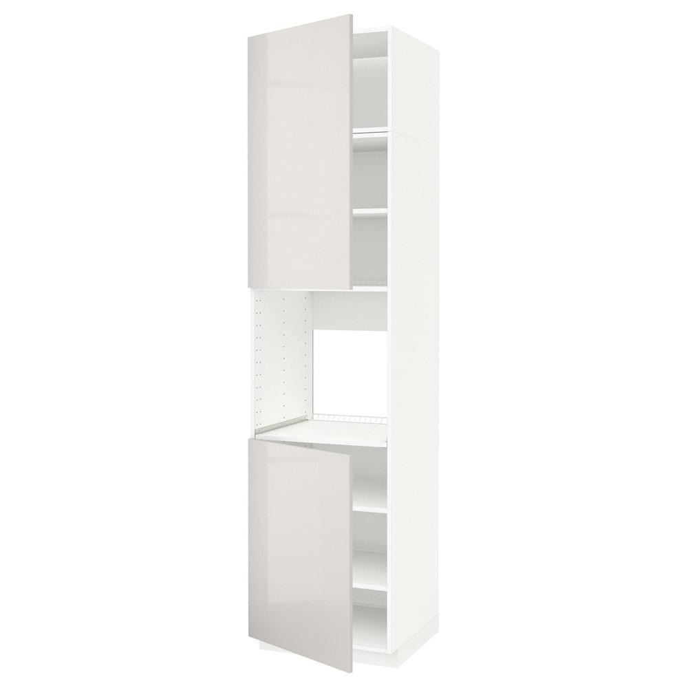 МЕТОД Высок шкаф д/духовки/2дверцы/полки - белый, Рингульт глянцевый светло-серый, 60x60x240 см