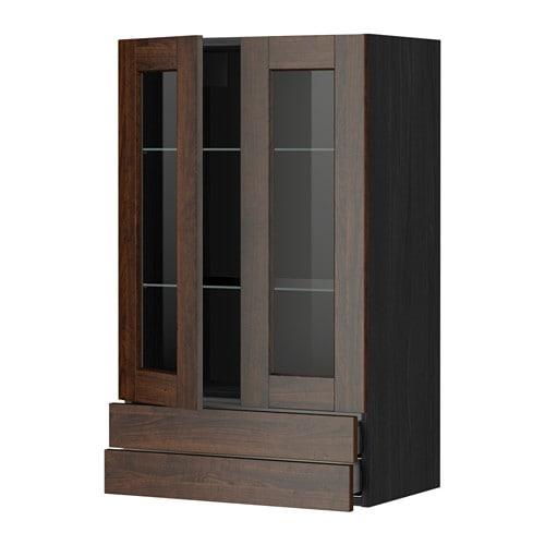 МЕТОД / МАКСИМЕРА Навесной шкаф/2 стек дв/2 ящика - под дерево черный, Эдсерум под дерево коричневый, 60x100 см