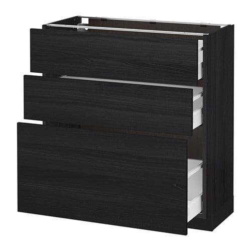 МЕТОД / МАКСИМЕРА Напольный шкаф с 3 ящиками - под дерево черный, Тингсрид под дерево черный, 80x37 см