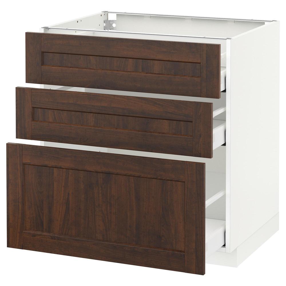 МЕТОД / МАКСИМЕРА Напольный шкаф с 3 ящиками - белый, Эдсерум под дерево коричневый, 80x60 см