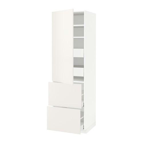МЕТОД / МАКСИМЕРА Высокий шкаф+полки/4 ящика/2дверцы - белый, Веддинге белый, 60x60x200 см