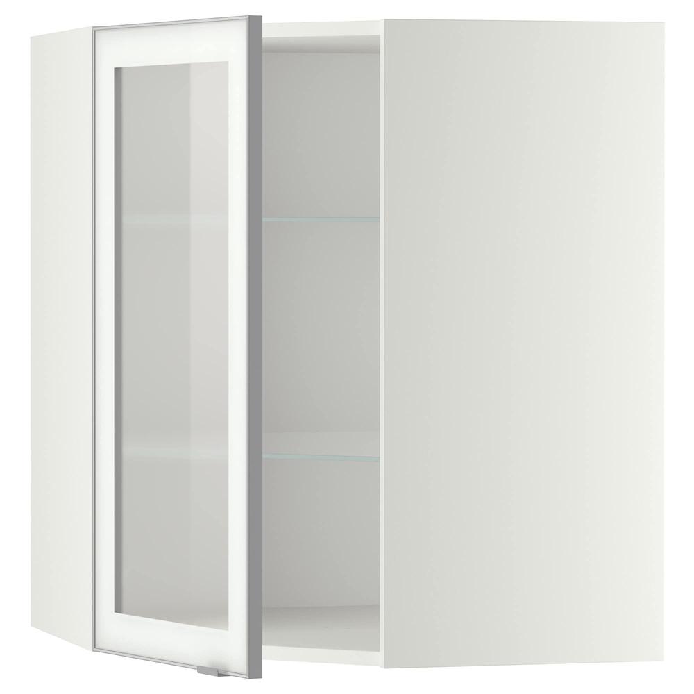 МЕТОД Углов навесн шк с полками/сткл дв - белый, Ютис матовое стекло/алюминий, 68x80 см