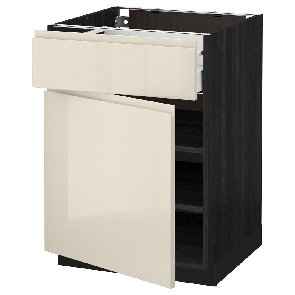 МЕТОД / МАКСИМЕРА Напольный шкаф с ящиком/дверью - под дерево черный, Воксторп глянцевый светло-бежевый, 60x60 см