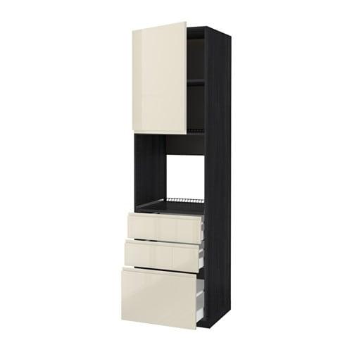 МЕТОД / МАКСИМЕРА Высокий шкаф д/духовки/дверь/3ящика - под дерево черный, Воксторп глянцевый светло-бежевый, 60x60x220 см