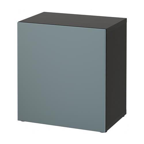 БЕСТО Стеллаж с дверью - черно-коричневый/Вальвикен серо-бирюзовый