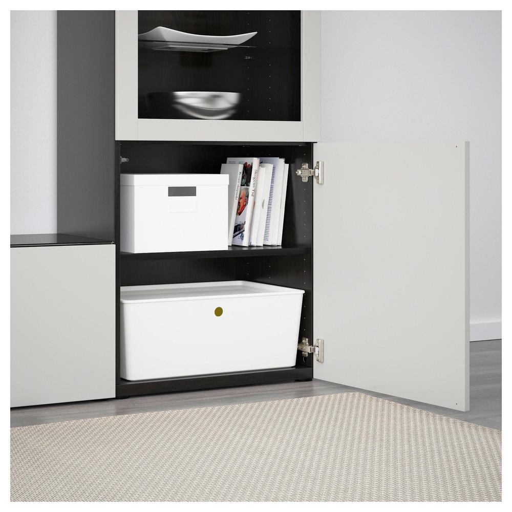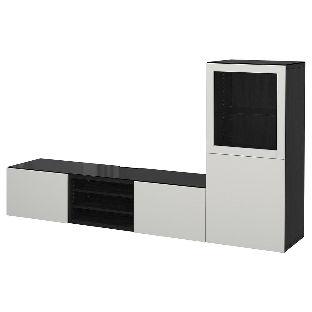 БЕСТО Шкаф для ТВ, комбин/стеклян дверцы - черно-коричневый/Лаппвикен светло-серый прозрачное стекло, направляющие ящика,нажимные