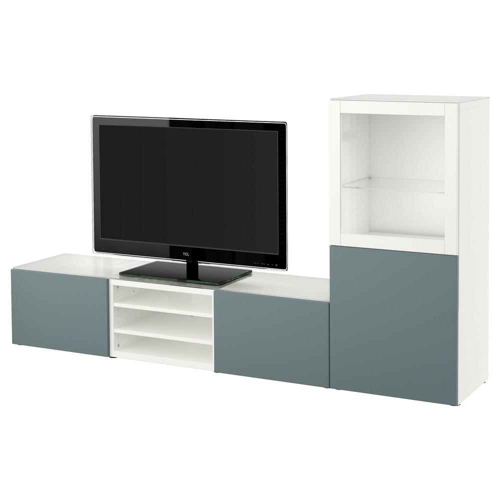 БЕСТО Шкаф для ТВ, комбин/стеклян дверцы - белый/Вальвикен серо-бирюзовый, прозрачное стекло, направляющие ящика, плавно закр 0.0/5 оценка (0 голосов)