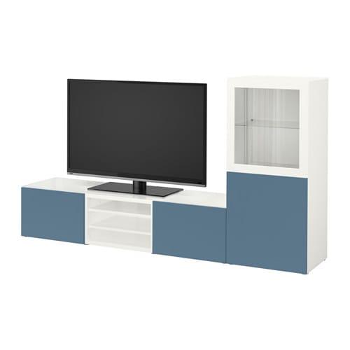 БЕСТО Шкаф для ТВ, комбин/стеклян дверцы - белый Вальвикен/темно-синий прозрачное стекло, направляющие ящика, плавно закр