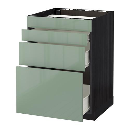 МЕТОД / ФОРВАРА Нап шкаф д/духовки/4фасада/3ящика - под дерево черный, Калларп глянцевый светло-зеленый, 60x60 см