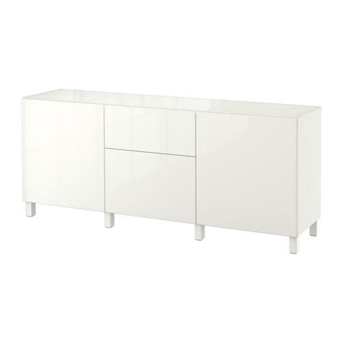 БЕСТО Комб для хран с дверц/ящ - белый/Сельсвикен глянцевый/белый, направляющие ящика, плавно закр