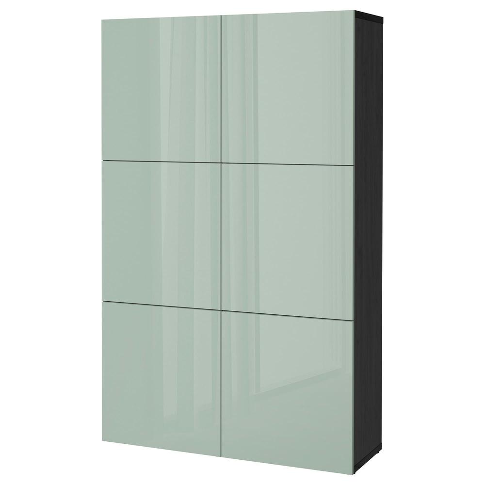 БЕСТО Комбинация для хранения с дверцами - черно-коричневый/Сельсвикен глянцевый/серо-зеленый светлый