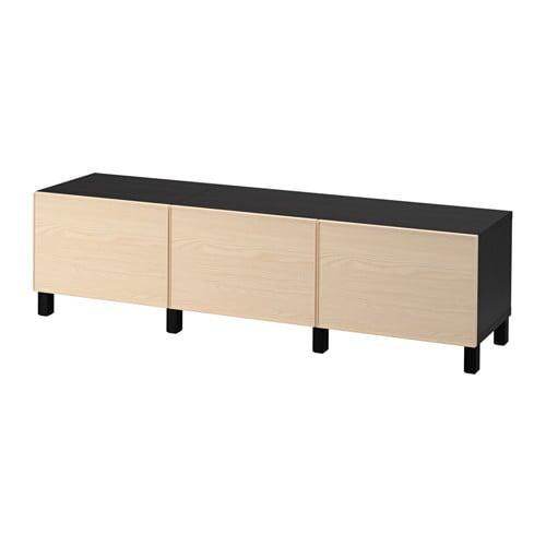 БЕСТО Комбинация для хранения с ящиками - черно-коричневый/Инвикен ясеневый шпон, направляющие ящика, плавно закр