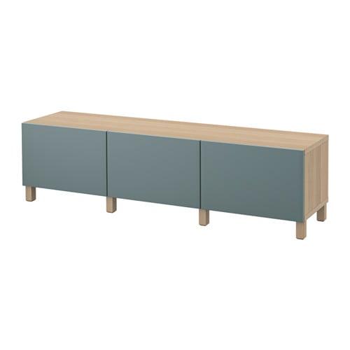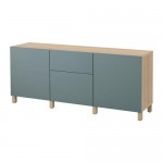 БЕСТО Комбинация для хранения с ящиками - под беленый дуб/Вальвикен серо-бирюзовый, направляющие ящика,нажимные