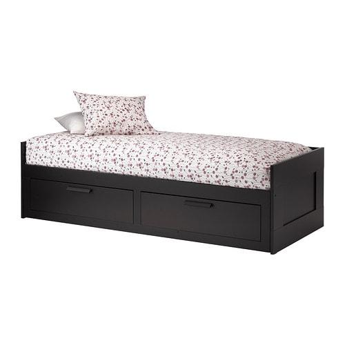 БРИМНЭС Кушетка с 2 матрасами/2 ящиками - черный/Малфорс средней жесткости