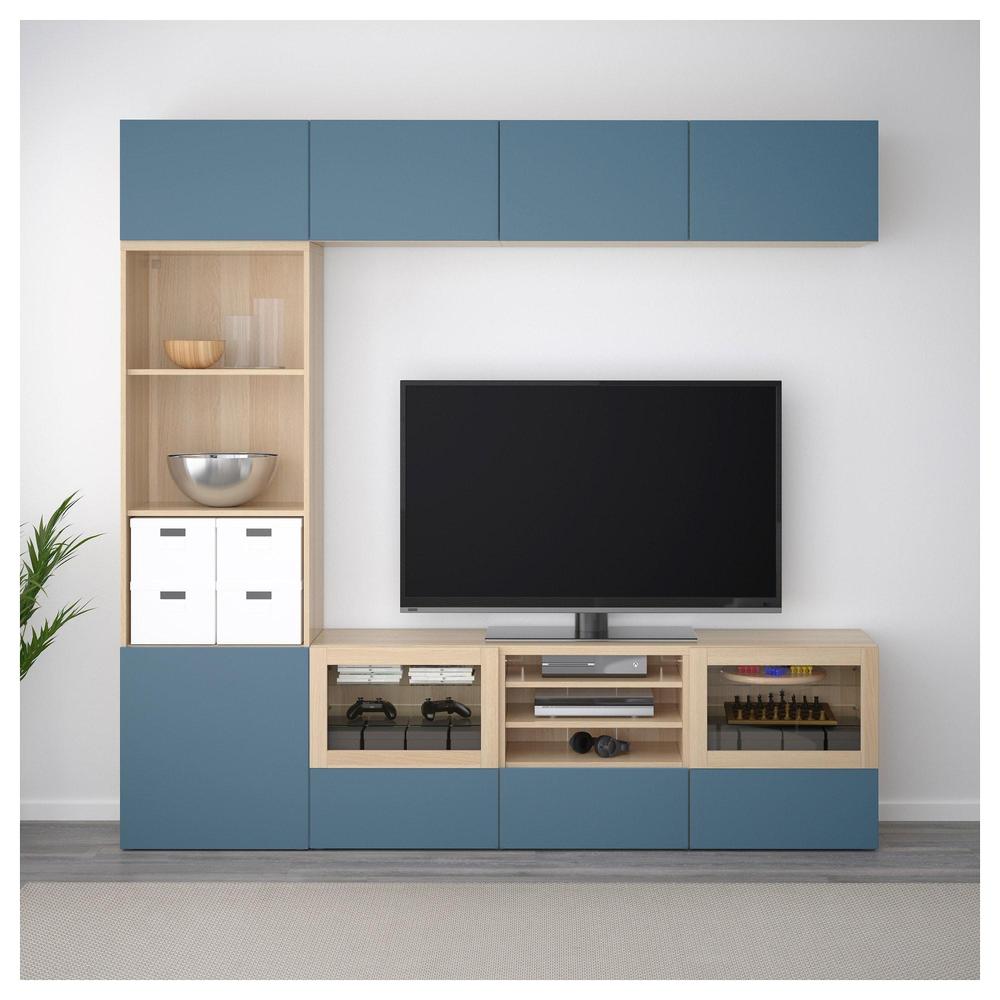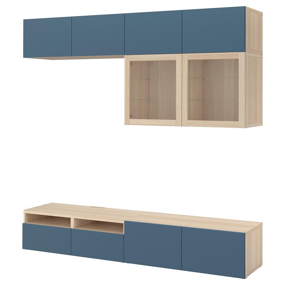 БЕСТО Шкаф для ТВ, комбин/стеклян дверцы - под беленый дуб Вальвикен/темно-синий прозрачное стекло, направляющие ящика, плавно закр 0.0/5 оценка (0 голосов)