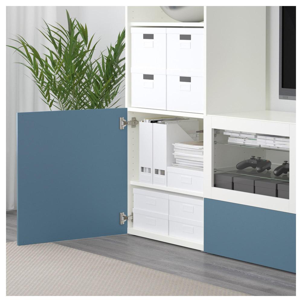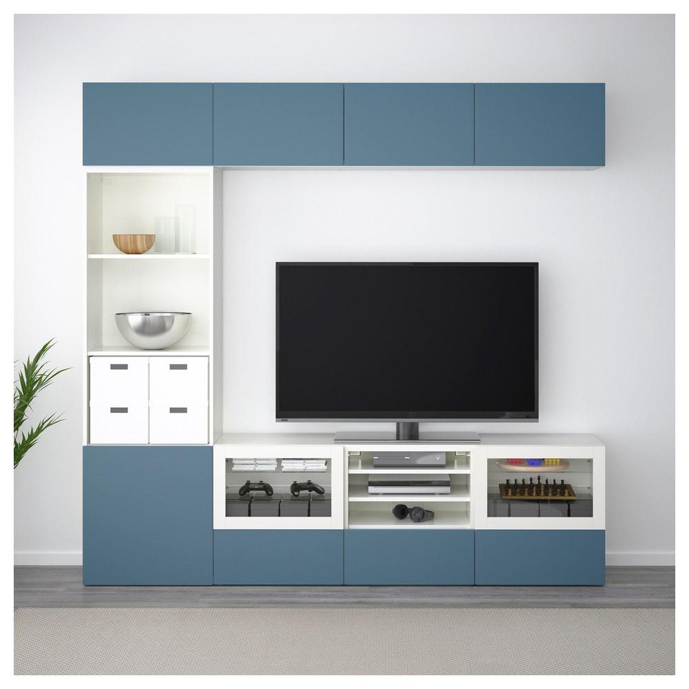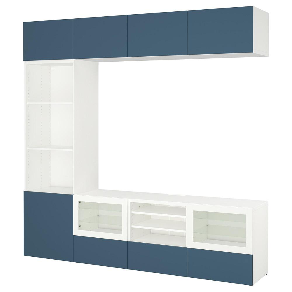 БЕСТО Шкаф для ТВ, комбин/стеклян дверцы - белый Вальвикен/темно-синий прозрачное стекло, направляющие ящика, плавно закр