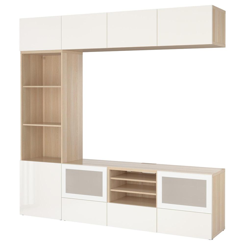 БЕСТО Шкаф для ТВ, комбин/стеклян дверцы - под беленый дуб/Сельсвикен глянцевый/белый матовое стекло, направляющие ящика,нажимные 0.0/5 оценка (0 голосов)