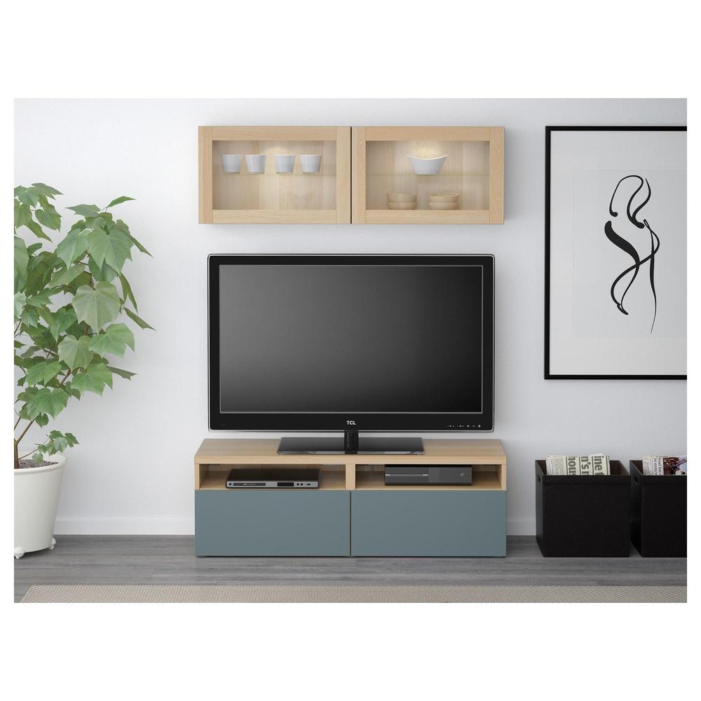 БЕСТО Шкаф для ТВ, комбин/стеклян дверцы - под беленый дуб/Вальвикен серо-бирюзовый, прозрачное стекло, направляющие ящика,нажимные 0.0/5 оценка (0 голосов)