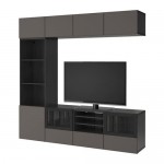 БЕСТО Шкаф для ТВ, комбин/стеклян дверцы - черно-коричневый Грундсвикен/темно-серый прозрачное стекло, направляющие ящика,нажимные
