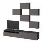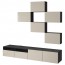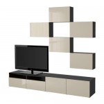 БЕСТО Шкаф для ТВ, комбинация - черно-коричневый/Сельсвикен глянцевый/бежевый, направляющие ящика, плавно закр