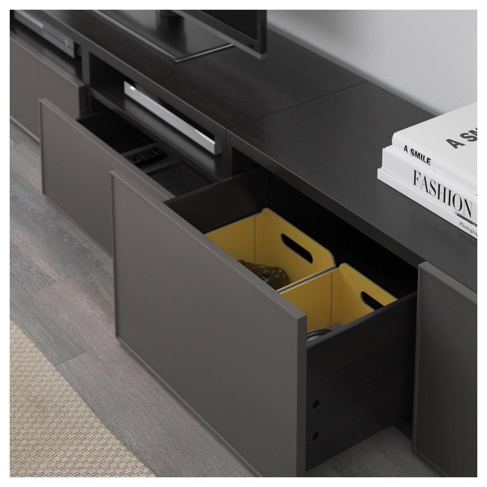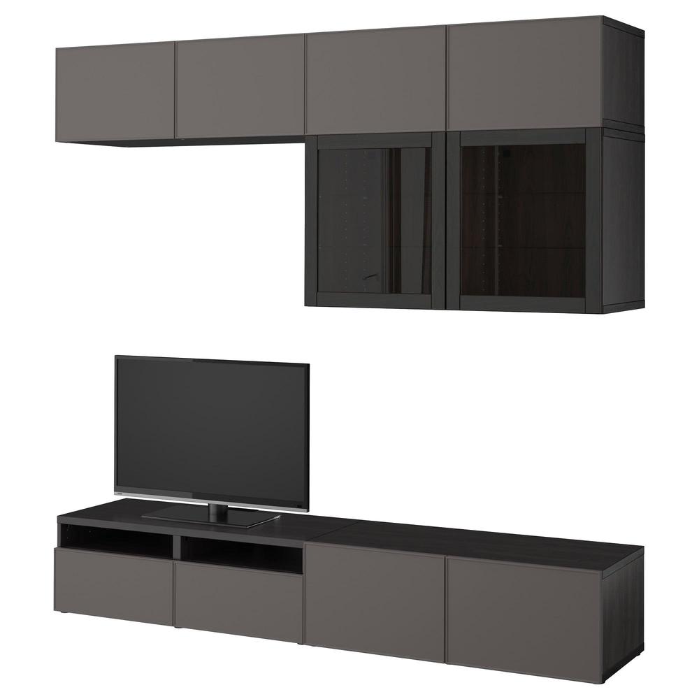 БЕСТО Шкаф для ТВ, комбин/стеклян дверцы - черно-коричневый Грундсвикен/темно-серый прозрачное стекло, направляющие ящика,нажимные