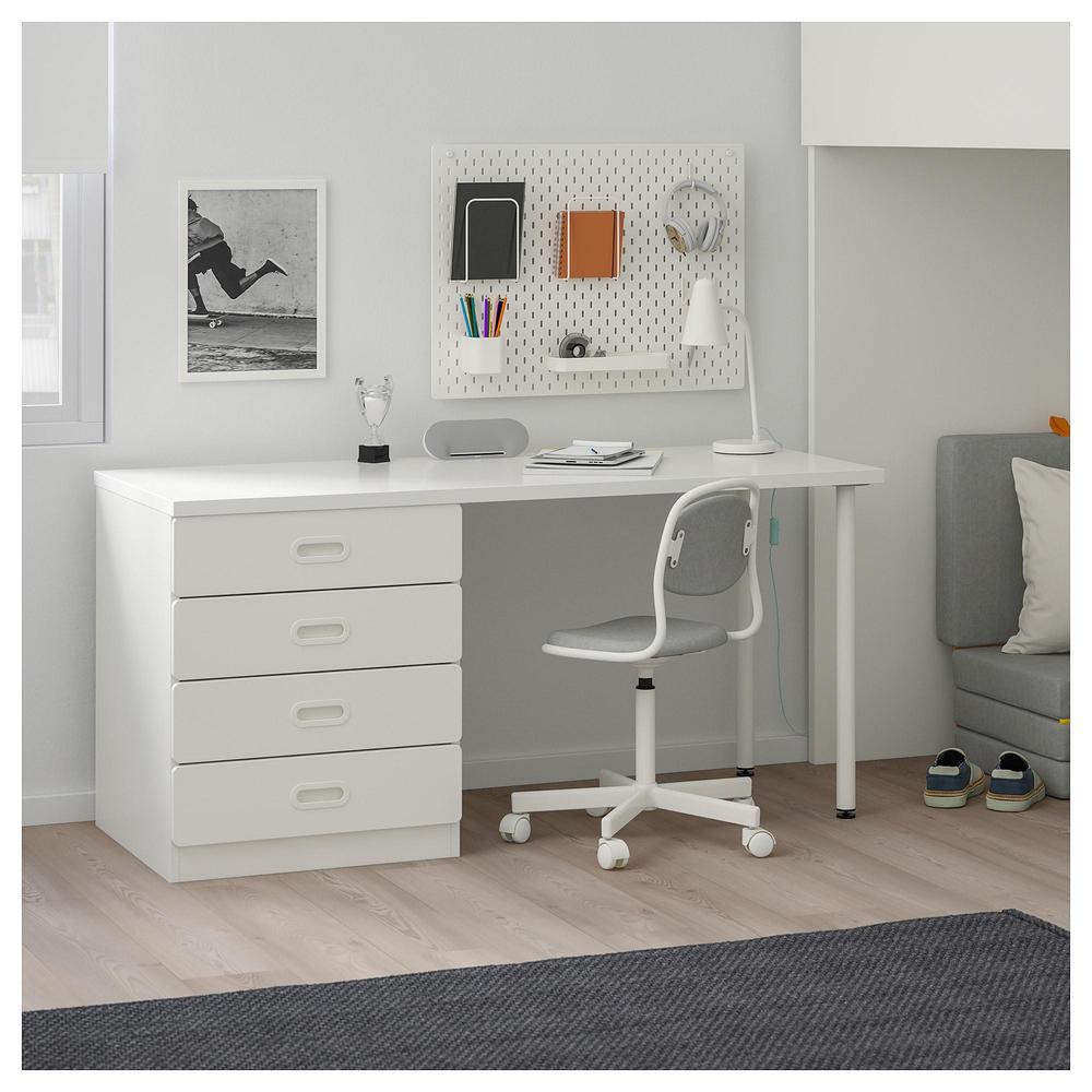 -Вы можете установить стол параллельно или перпендикулярно кровати, а также поставить отдельно, дополнив двумя ножками АДИЛЬС (продаются отдельно).